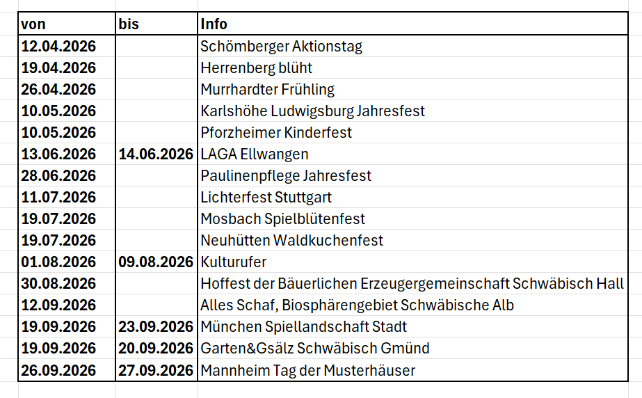 Hier findest du alle Feste, bei denen du unser Spielangebot mit deinen Kindern besuchen kannst.